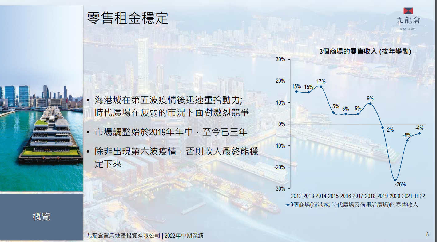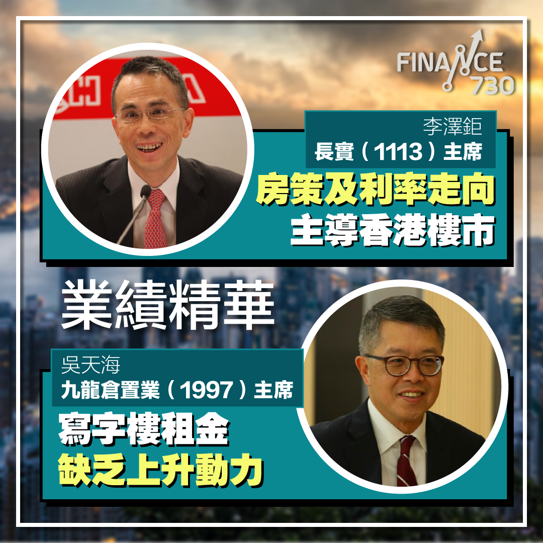 至於九龍倉置業(1997)業績則以「新冠終局未明」為題,主席吳天海明言不奢望本港商廈租金會於短期內回復至高速上升軌。