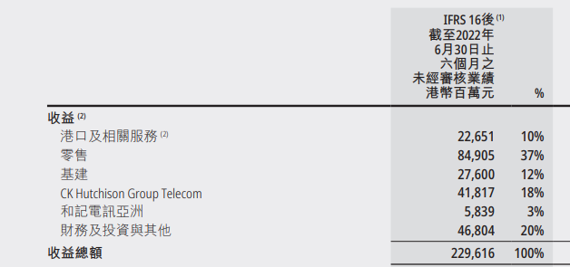 長和上半年多賺4.3%至近191億元,每股盈利4.98元,派中期息0.84元,較往年同期增半成。期內收益總額按年升8%至2,296億元,當中佔比最大的零售業貢獻849億元。截至六月底,零售部門在28個市場經營16,244家店舖,較2021年底減少1%,反映公司在市況反覆之際採取審慎開設店舖策略,尤其內地業務受到不同程度的封區及主要城市封鎖嚴重影響。